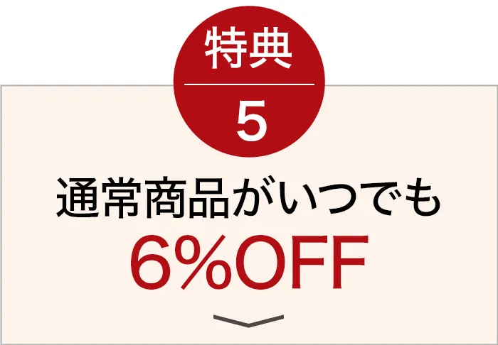 定期コース以外の通常商品がいつでも6%OFFとなります。気になる商品もお求めやすくなります。