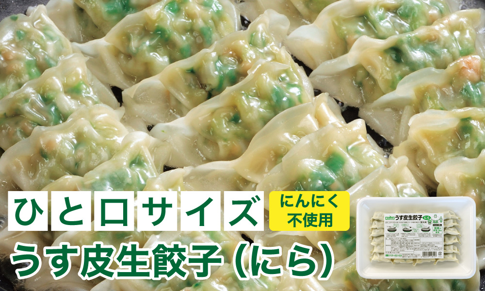 「うす皮生餃子」は、たっぷりのニラや野菜を使用したヘルシーなひと口サイズの餃子です。