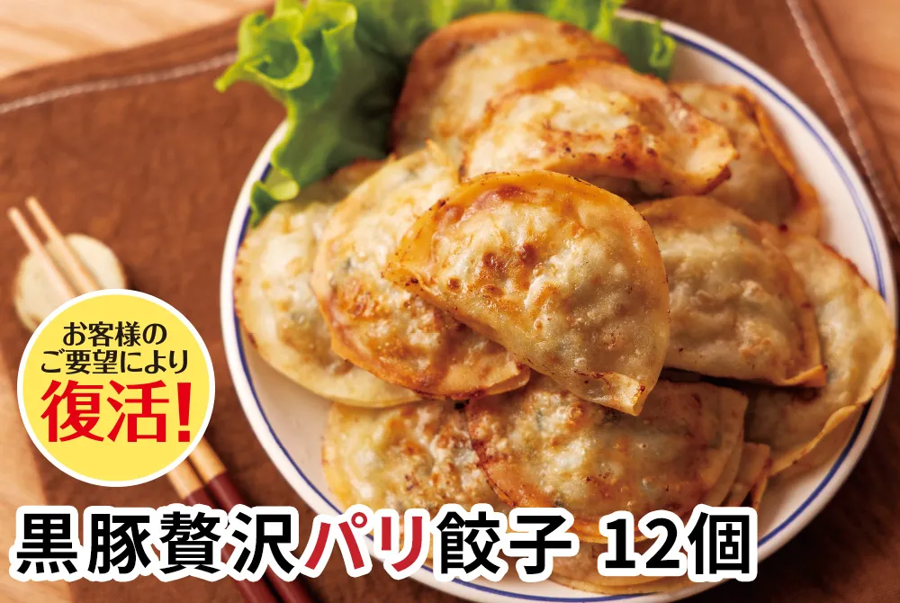 2025年末より原材料不足や生産コストの高騰により惜しくも販売終了となった「社長のおすすめ黒豚餃子」が名前を変え復刻しました。 以前と変わらず九州産の純粋黒豚(バークシャー種)を100%使用し、他の餃子では味わえないパリパリの食感が特長です。