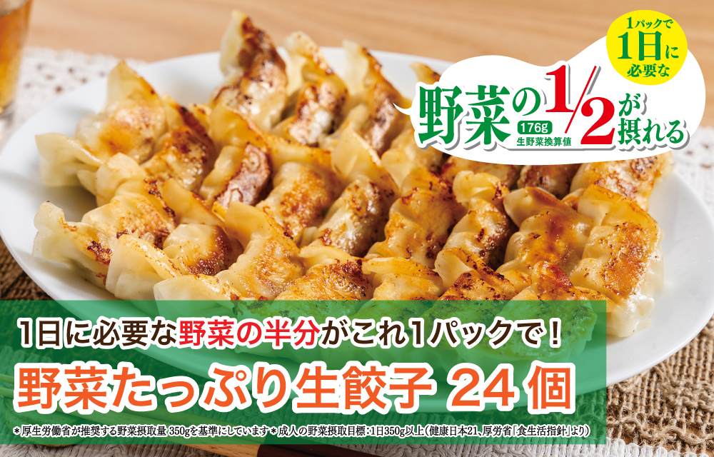 1日に必要な野菜の半分が入った「野菜たっぷり生餃子」。