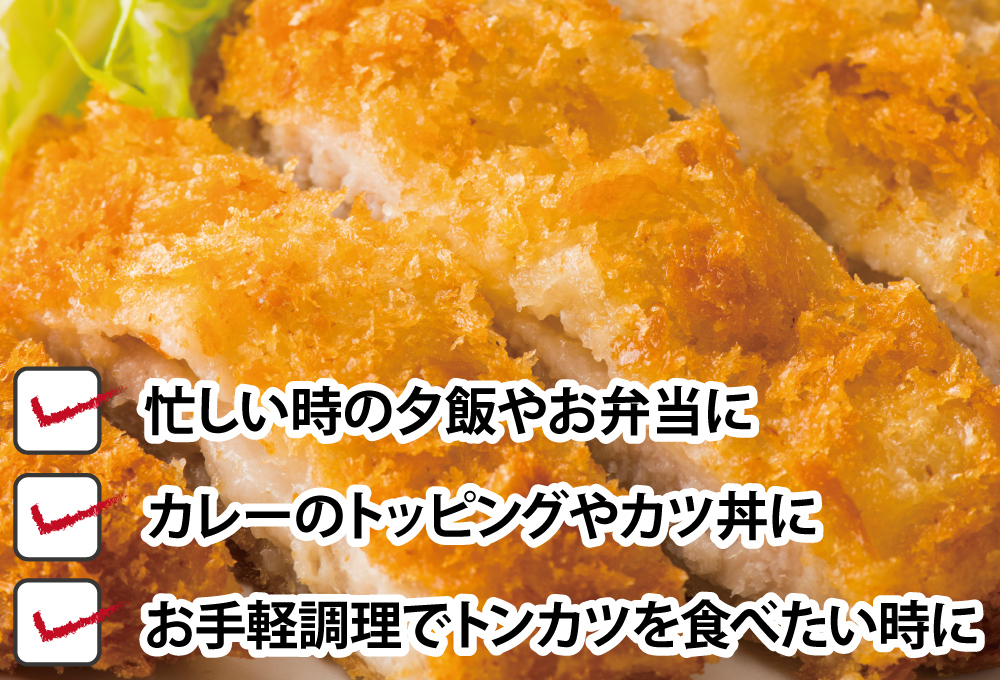 時間がないときも冷凍庫から出し揚げるだけで、柔らかな美味しいとんかつができます。うちではカツ丼を作るときによく使います。