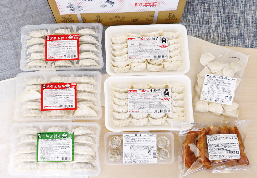 九州産の「純粋種黒豚」を100%使用した人気No.1の黒豚生餃子をはじめ、